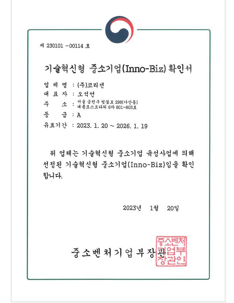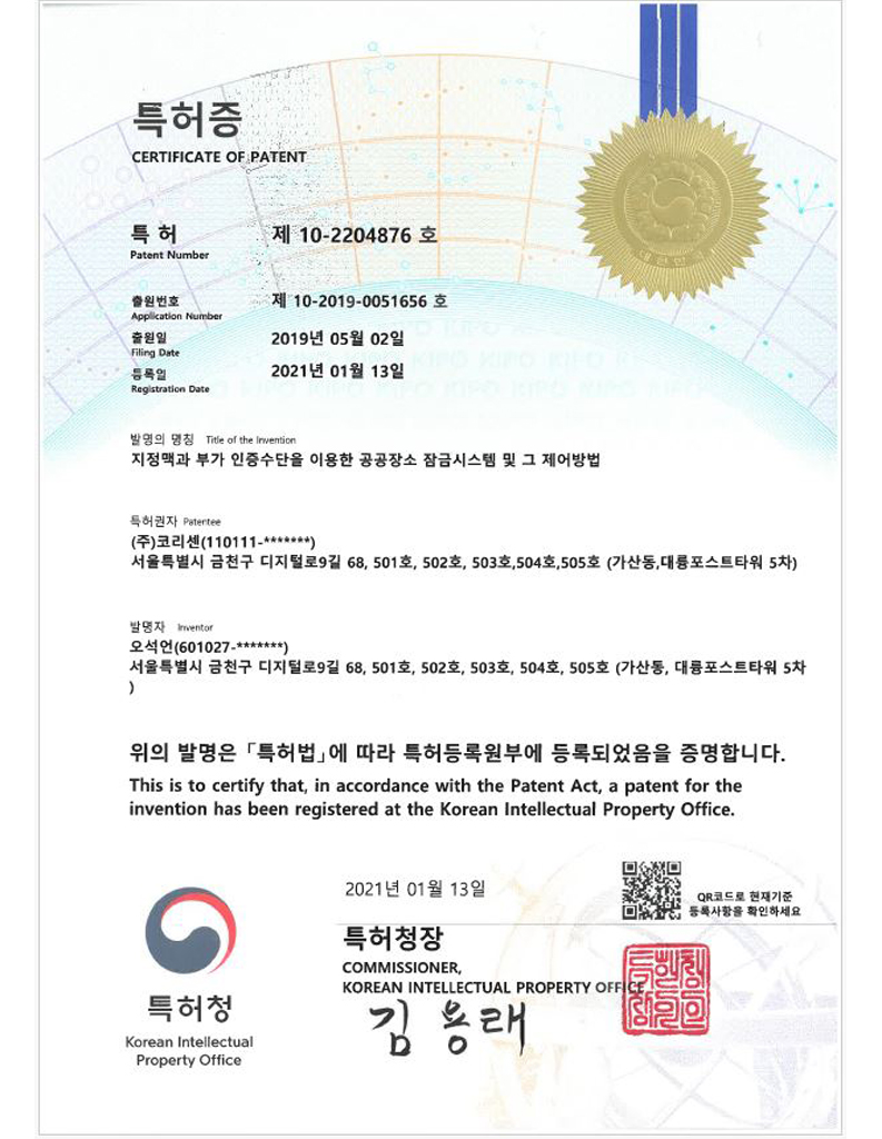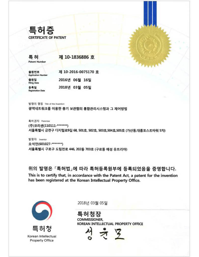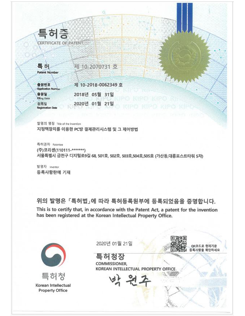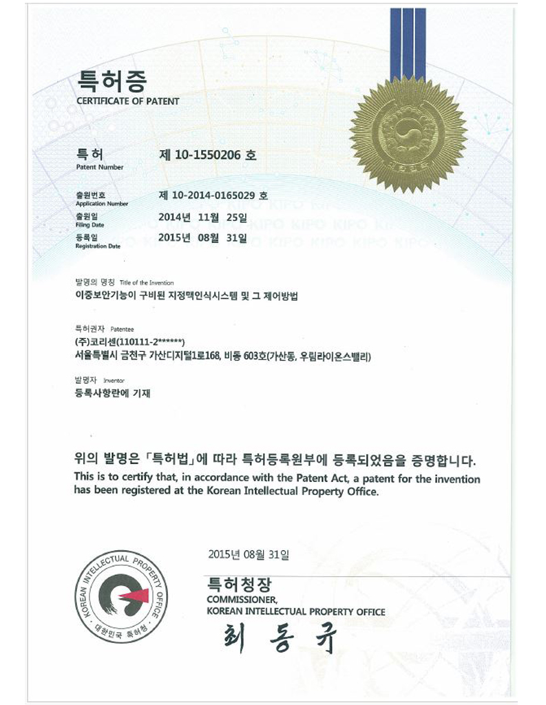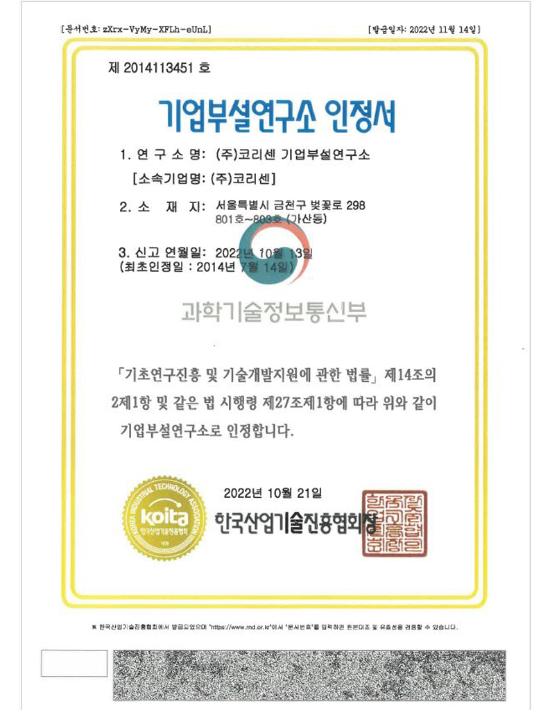 코리센 특허 및 지적재산권