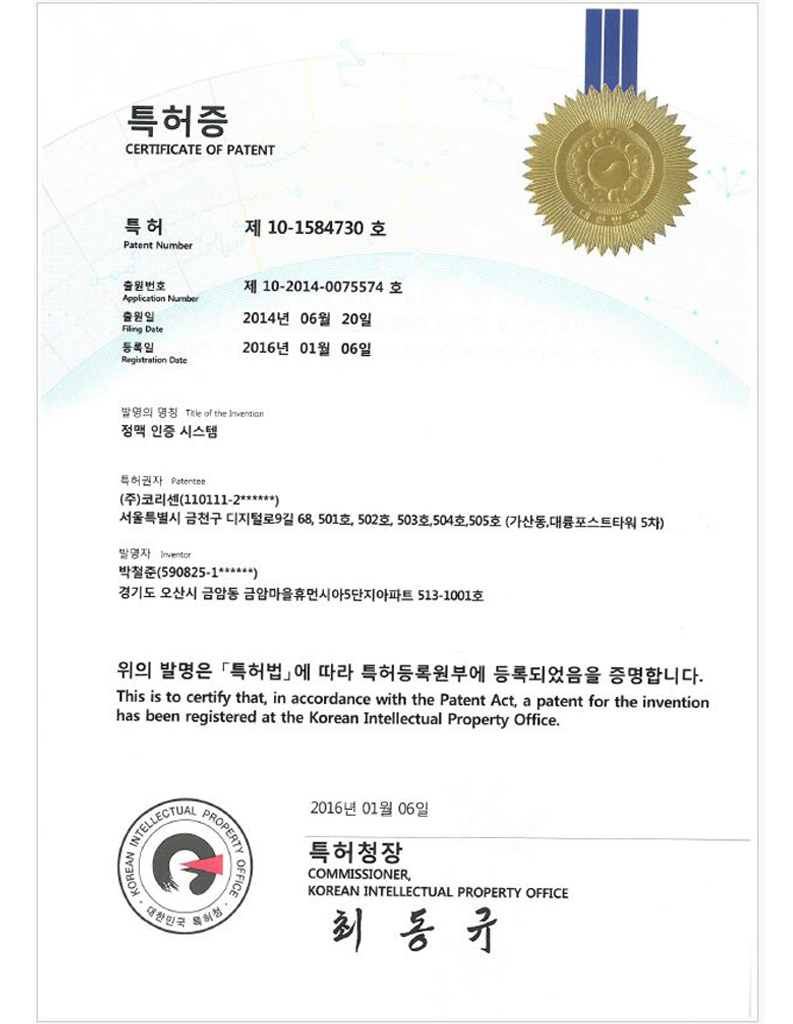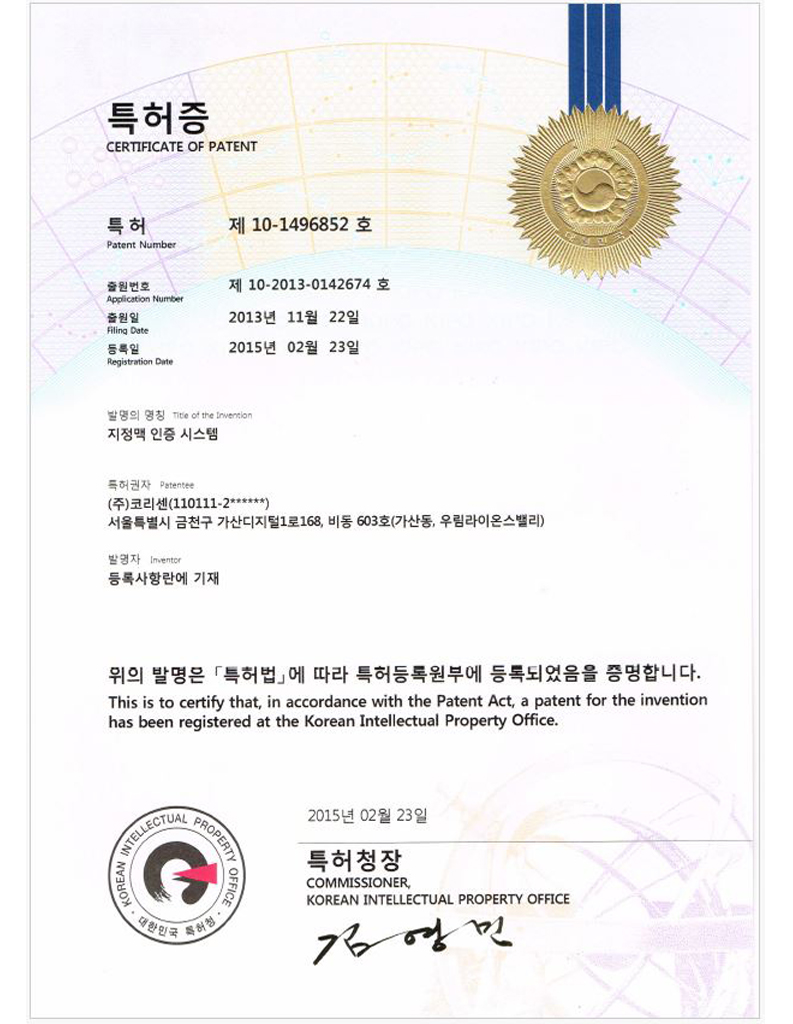 코리센 특허 및 지적재산권